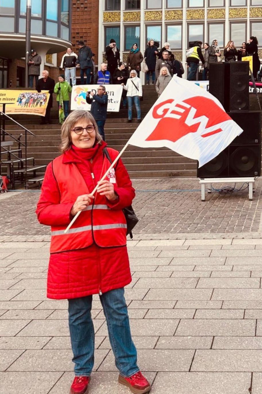 Ich bin Birthe Draeger, Gewerkschaft Erziehung und Wissenschaft, Kreisverband Düren. Ich vertrete hier auch den DGB Kreisverband Düren und Jülich.